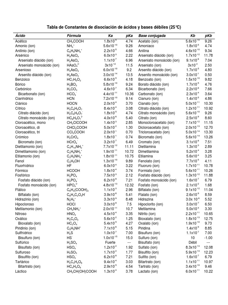 Tabla De Constantes Ka Y Kb Constantes de acidez y basicidad a 25 °c www.vaxasoftware.com ácido reacción ka pka yodhídrico hi + h2o i + h 3o + muy grande. Los valores de la constante de disociación ácida (k a) y la constante de basicidad (k b) representan la facilidad con la que un ácido o una base se disocian en iones dentro de. Constantes de acidez y basicidad a 25 °c www.vaxasoftware.com ácido reacción ka pka yodhídrico hi + h2o i + h 3o + muy grande. Planteo de constantes de acidez y de basicidad (ka y kb).producto ionico del agya (kw)marca de tiempo:0:00 int. Constantes de acidez y basicidad a 25 °c www.vaxasoftware.com ácido reacción k a pk a yodhídrico hi + h2o → i − + h 3o + muy grande. En este artículo, hablaremos de reacciones de disociación de los ácidos y de las bases y sus constantes de equilibrio correspondientes: Explicacion teorica de acidos y bases debiles. Ácido fórmula ka pk a base conj.